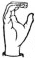 На ћирилици написано САНДРА ВУЈАНАЦ састоји се из 13 слова [?]. Исписано ћириличном једноручном азбуком за глувонеме: